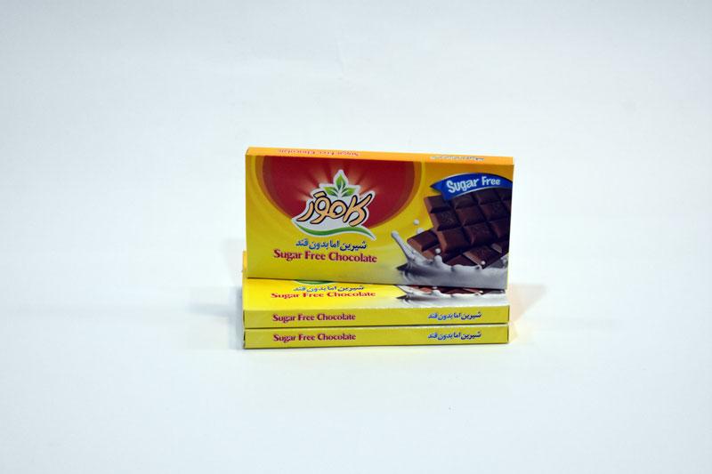 شکلات بدون شکر کامور، شکلاتی است که در ترکیب آن به جای شکر از یک قند غیر قابل جذب برای بدن استفاده شده است که علاوه بر آنکه طعم شیرین شکلات را حفظ می کند به هیچ وجه قند خون را بالا نمی برد و چون جذب نمی شود کالری کمتری به بدن می رسد که خود یکی از عوامل کنترل وزن است.