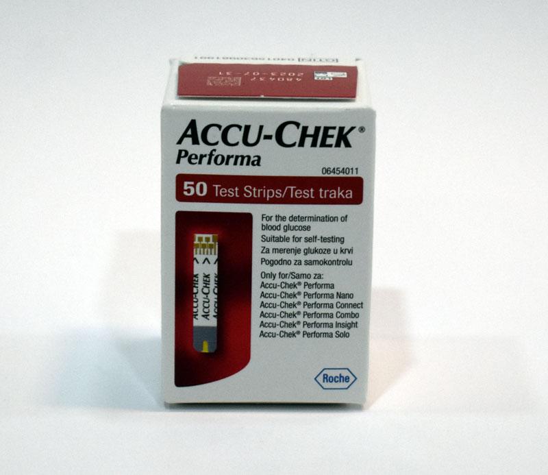 نوار تست قند خون Performa که توسط شرکت «آکیو چک» (Accu Chek) تولید شده، حاوی 50 عدد نوار تست است. برای اندازه‌گیری قند خون باید حداقل 0.6 میکرولیتر از خون بدن را توسط سوزن مخصوص، روی نوار تست قرار داد.